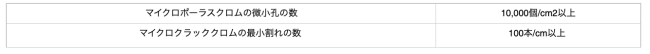 マイクロポーラスクロムメッキ及びマイクロクラッククロムメッキは、9.5によって試験を行ったとき、微小孔及び微小割れの数は、表3のとおりでなければならない。