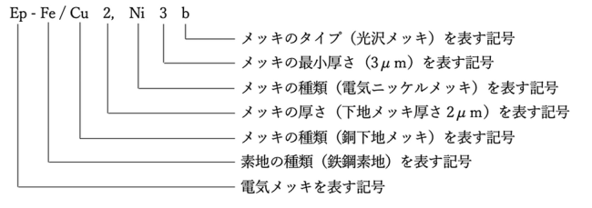 JIS H 0404 電気メッキの記号による表示方法