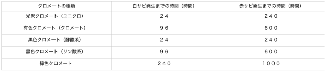 注 表中の数値は/の前が白色生成物、/の後が赤さびの試験時間を示す。(単位時間)