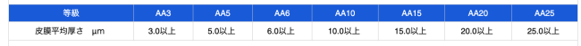 表2 皮映厚さの等級