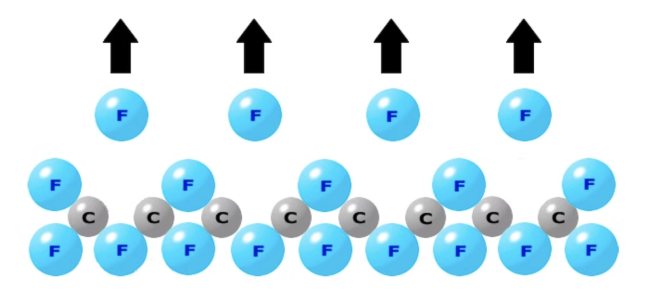さらに炭素原子同士の結合部はフッ素原子で隙間なく覆われています。