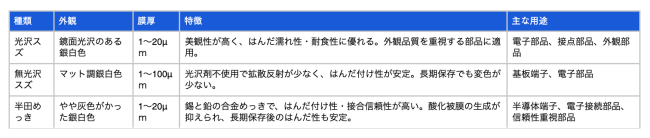 錫めっきの主な種類と技術特性